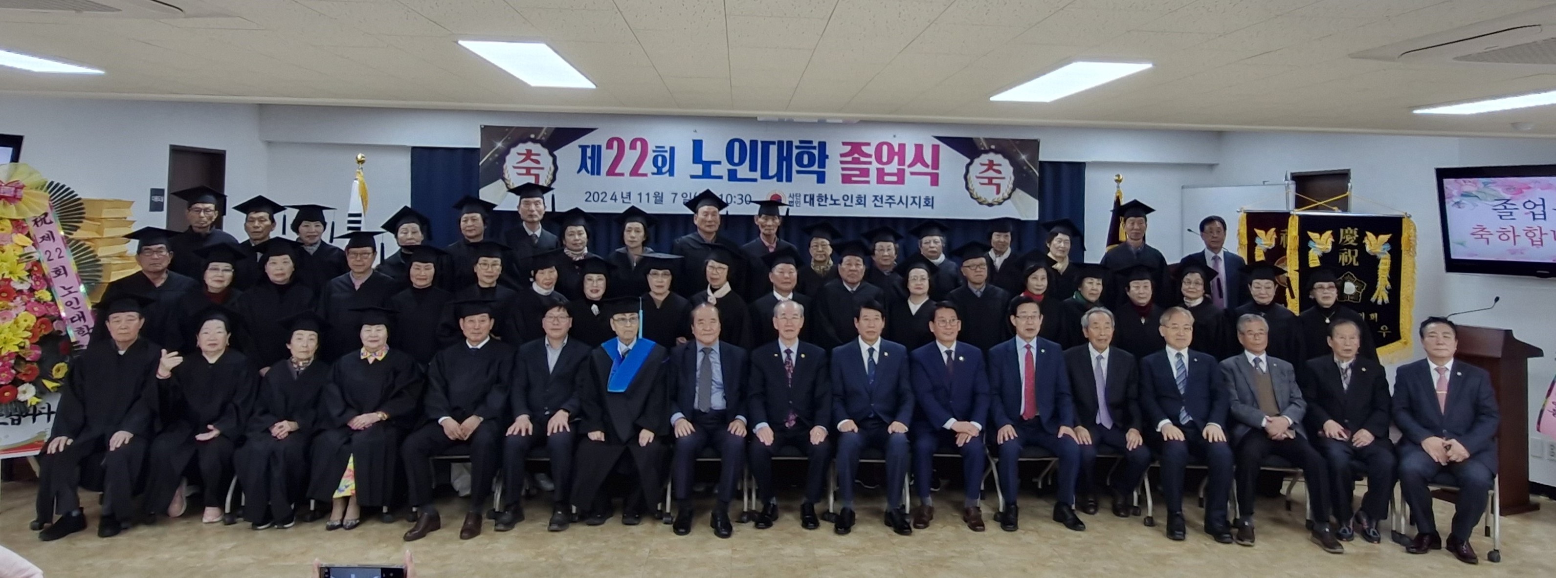 ○ 대한노인회전주시지회(회장 전영배) 부설 노인대학(학장 강태용)은 7일지회강당에서 제22회 노인대학
